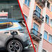 ¿Que si no tengo no garaje no puedo comprarme un coche eléctrico? Sujétame el cubata. La imagen es tan insólita como cómica: un cable tirado desde el balcón de un quinto piso recargando un automóvil cero emisiones estacionado en la calle. Y no precisamente bajo el balcón: el cable cruza casi toda la fachada.