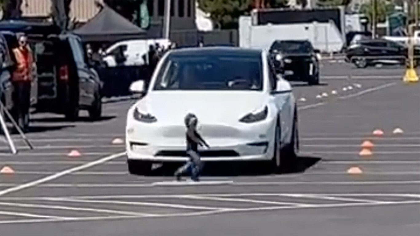 En las imágenes se muestra un test que pone a prueba la conducción autónoma de un Tesla y un Lexus al mismo tiempo. El reto es sencillo y no debería ser un problema para ninguno de los dos coches: detectar un maniquí del tamaño de un niño y frenar de forma autónoma para no atropellarlo. El Lexus lo consigue y el Tesla se lleva por delante al muñeco.