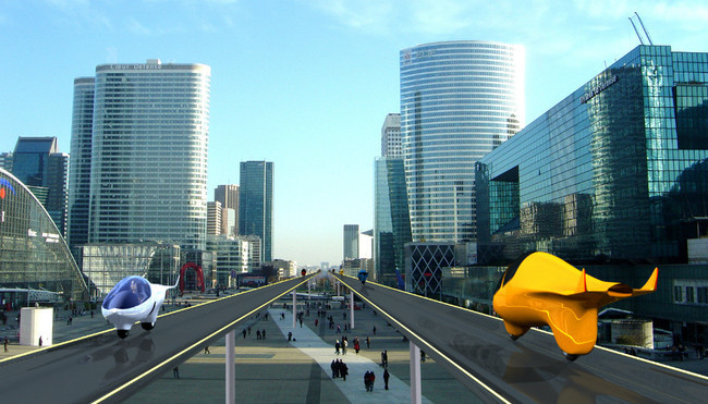 Año 2050. Las carreteras son ya elevadas y además se han automatizado, de manera que los vehículos circulan sin necesidad de un conductor. El electromagnetismo permite desplazamientos a velocidades de 300 km/h de momento, aunque se prevé incrementar la velocidad a 600 km/h en las próximas décadas. Se mantienen, no obstante, las vías tradicionales para los anticuados coches eléctricos. Es posible llegar de Zúrich a Hamburgo en una hora, o de Fráncfort a Madrid en cuatro. La energía solar se capta en lugares soleados de España, Arizona, el centro de la India, el norte de África y Oriente Medio, y la electricidad se pasa directamente de la infraestructura al vehículo. Las baterías sólo se emplean para tareas auxiliares.