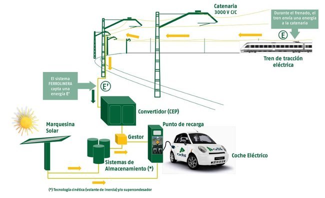 Actualmente, salvo las modernas vías del AVE, la energía que los trenes mandan a la catenaria se reaprovecha si hay otro convoy cerca, pero sino se pierde irremediablemente.