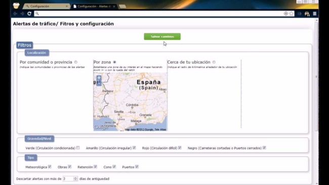 A partir de ahí podemos filtrar las alertas por fecha, tipo (obras, retenciones...) o gravedad, apareciendo así en Google Maps basándose en la información ofrecida por la DGT. Las alertas aparecerán en una ventana al iniciar el navegador y avisándonos con sonidos o incluso escuchando las incidencias a través de un sintetizador de voz.