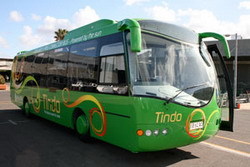 Al llegar a la estación, el Tindo (así se denomina el autobús) recarga sus 11 baterías con las que consigue una autonomía de 200 kilómetros, pudiendo transportar hasta 42 pasajeros.