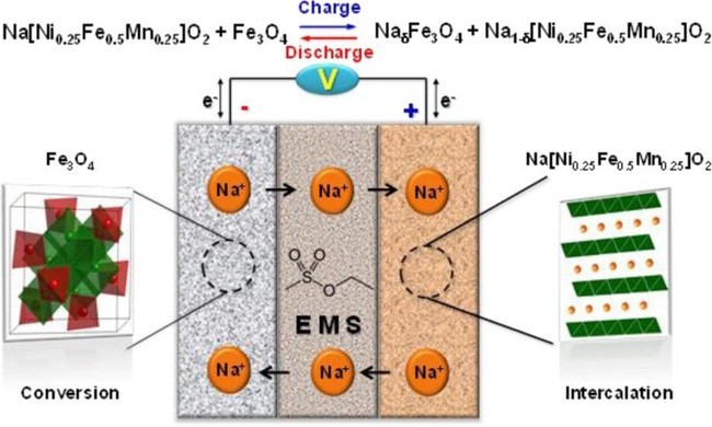 Se utiliza un ánodo de conversión de óxido de hierro recubierto con carbono, un cátodo de intercalación en láminas de sodio, y un electrólito de perclorato de sodio en una disolución de carbonato de fluoroetileno y metasulfonato de etilo. El resultado es una nueva batería de iones de sodio con una buena capacidad, similar a la de las baterías de iones de litio modernas, pero con un coste menor.