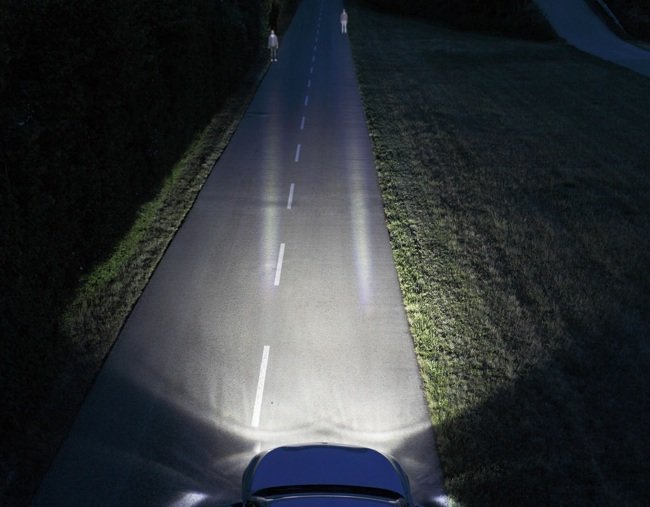 Esta luz adicional solo se enciende cuando el peatón está muy lejos (más allá del alcance de las luces de cruce, que viene a ser entre 50 y 80 m), cuando el coche se acerca, y los faros normales ya iluminan al peatón, la luz adicional se apaga.