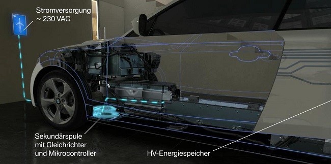 Sobre las estaciones de carga convencionales, la ventaja que aporta la recarga por inducción está en prescindir del cable como elemento de conducción de la energía. El vehículo recibe por medio de una bobina la tensión que le transmite una bobina situada en el suelo. El mayor problema que presentan estos puntos de recarga son el coste de instalación y la pérdida de energía. En el caso del sistema que presenta BMW, se habla de una eficiencia superior al 90 %.
