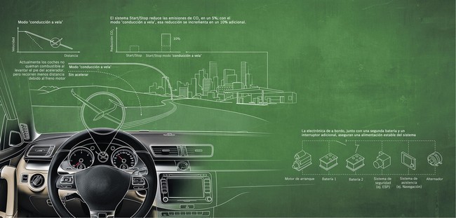 Con esta solución de Start-Stop es posible conducir a vela, es decir, apaga el motor de combustión y lo desacopla de la transmisión, en el momento en el que el vehículo puede mantener su velocidad al rodar por inercia.
