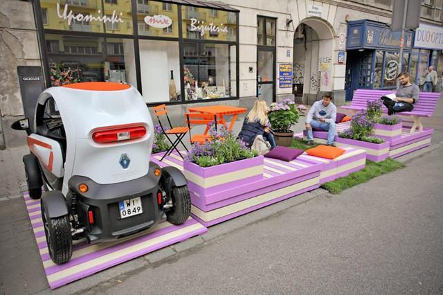 Los distribuidores de Renault de la ciudad de Varsovia, en Polonia, han tenido la genial idea de crear pequeños jardines en los alrededores del espacio destinado a la recarga de vehículos eléctricos, resultando un espacio, cuanto menos, encantador.