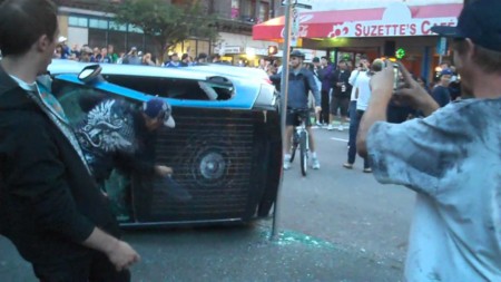 Por desgracia es una tradición que se está asentando en norteamérica la de salir a la calle después de una gran competición y dedicarse a destrozar todo lo que se pilla por la calle, indepedientemente de que el equipo local haya ganado o perdido, la razón es lo de menos.