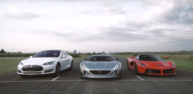 Archie Hamilton ha dejado para la posteridad un vídeo que te puede hacer salivar. Se trata de una comparativa de aceleración por entregas: la semifinal se celebra entre un Ferrari LaFerrari y un Tesla Model S P90D que corre que se las pela, pero que resulta insuficiente para jugar en la final: un reto de los de m/s² que se celebra entre el susodicho LaFerrari y un Rimac Concept_One.