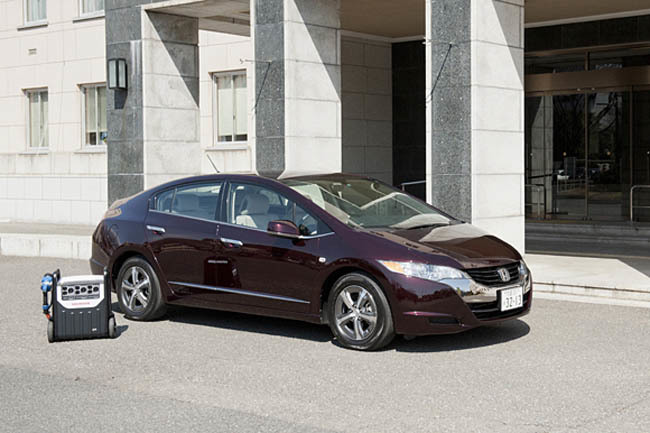 Pero ahora Honda ha tomado prestada esta idea, y ha instalado un inversor en una de las unidades del FCX Clarity, un modelo dotado de una pila de combustible de hidrógeno que multiplica las posiblidades de este sistema. El Clarity es capaz de producir hasta 9 kW de forma continua durante 7 horas, lo que en la práctica supondría que los 57 litros de su depósito, podrían generar suficiente electricidad para cubrir las necesidades de una vivienda durante seis días.