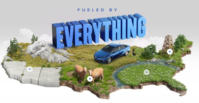 Estos se desprenden, como conocemos, de la producción del hidrógeno. Pues bien, en los dos vídeos publicados hasta el momento por Toyota, bajo al etiqueta "Fueled by Everything" (título que se vale del hecho de que el hidrógeno es el elemento más abundamente en el Universo), el fabricante se centra en la hidrólisis y la obtención de hidrógeno a través de excrementos, en un intento de familiarizar la tecnología para el gran público.