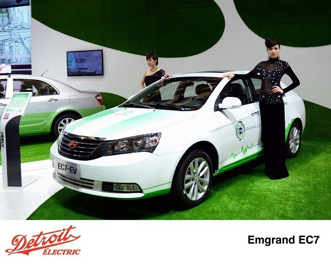 El coche elegido para transformar a electricidad ha sido el Emgrand EC-7, el vehículo más vendido de Geely en el mercado chino. El Emgrand EC-7 EV será capaz, gracias a la experiencia de Detroit Electric con coches como el SP:01, de alcanzar 100 kilómetros por hora desde parado en menos de 8 segundos y llegando hasta una velocidad máxima de 200 km/h.