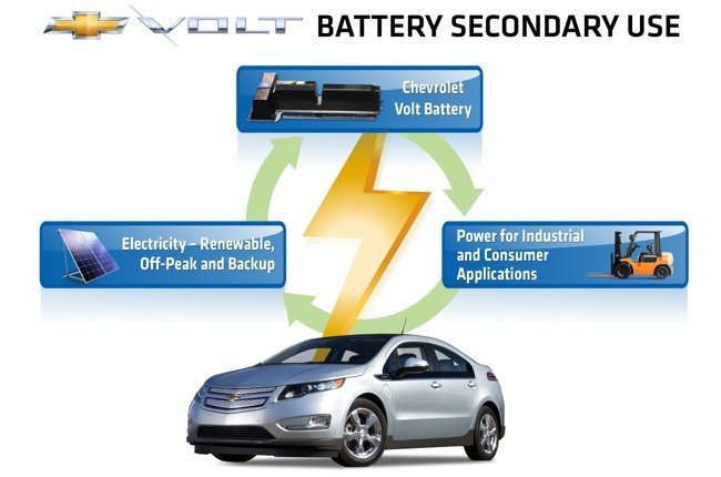 Por ejemplo, con 33 baterías de Volt que tengan todavía algo más del 70% de su capacidad de carga, se pueden alimentar con electricidad 50 casas (norteamericanas) durante cuatro horas (por ejemplo en un corte de suministro, a modo de back up o suministro de emergencia). La idea es crear un sistema de unidades de baterías junto con un inversor (para pasar de corriente continua a alterna o viceversa), conectadas a la red eléctrica.