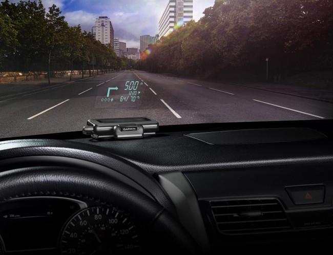 Este dispositivo Garmin HUD puede recibir la información de cualquier dispositivo compatible con Bluetooth mediante una aplicación. Los conductores dispondrán en el parabrisas de toda la información necesaria sobre navegación, así como velocidad actual del vehículo, límite de velocidad para la carretera por la que se circula y alertas sobre radares.