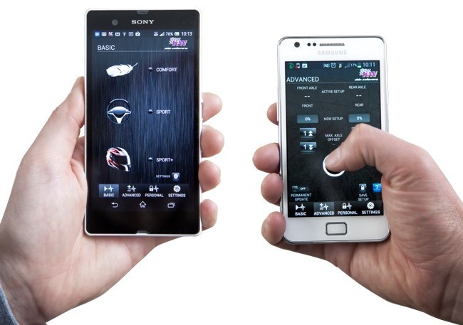 Para evitar que cualquier persona que tenga instalada la aplicación pueda cambiar los ajustes de la suspensión del coche, la aplicación que instalamos en nuestro teléfono sincroniza con una clave un solo smartphone con el sistema electrónico de control de la suspensión. Solo el conductor con su smartphone puede modificarlo.