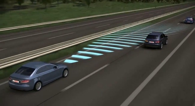 Este sistema emplea un radar delantero para medir la distancia de seguridad con el vehículo que nos precede y mantiene constante la velocidad de crucero que el conductor haya seleccionado, y a la vez mantiene la distancia de seguridad adecuada, dejando de acelerar o incluso frenando suavemente, para reducir la velocidad y recuperar la distancia, y volviendo a acelerar cuando se pueda, y regresar a la velocidad programada.