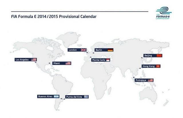 La primera carrera inaugural tendrá lugar en Pekín en el mes de septiembre de 2014, mientras que el cierre de temporada será en Londres en el mes de junio de 2015. Tres nuevas ciudades han sido cambiadas en el calendario sobre las primeras ciudades anunciadas: la pintoresca playa de Punta del Este en Uruguay, el glamuroso puerto de Montecarlo y el fastuoso centro financiero de Hong Kong, dejando fuera a Roma, Rio de Janeiro y Bangkok, que quedarán como candidatas para la próxima convocatoria.