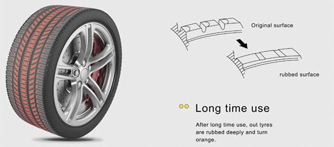 Los diseñadores Gao Fenglin y Zhou Buyi presentan un prototipo muy simple, pero también tremendamente funcional. Las Discolor Tyre cuentan con una capa coloreada justo debajo de la negra habitual. De esta forma al pasar los 20.000 kilómetros de vida útil de los neumáticos esa capa de color empezará a aparecer, indicando así que ha llegado el momento de renovarlos.