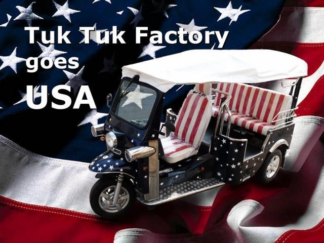 Actualmente tres tuk-tuks eléctricos han llegado a los Estados Unidos, procedentes de Holanda, y se encuentran en proceso de homologación desde el pasado día 23 de abril. Se espera que puedan obtener el Certificado del Departamento de Transportes para poder circular por las calles de los Estados Unidos y así poder ofrecer servicio de taxi a operadores turísticos, hoteles y otras empresas que, al parecer, han mostrado interés por el producto.