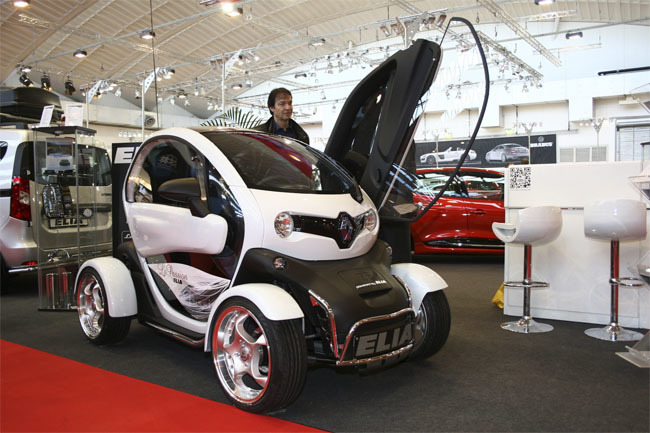 Debe ser raro ver un Renault Twizy pasearse por una feria de preparadores, pero seguramente no sería lo más extraño y extravagante que alojó el pasado salón alemán Essen dedicado a la modificación interna y externa de coches.