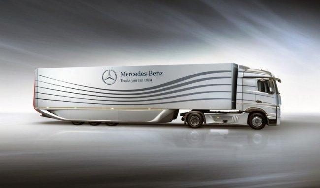 Es el caso del prototipo Aero Trailer, un prototipo de 13.6 metros de largo que el fabricante Mercedes presentará en el salón del Trailer 2011 que se celebrará en Bélgica, un diseño que dispone de múltiples soluciones pensadas por y para reducir la fricción aerodinámica, y con ello rebajar el consumo, unas soluciones que suponen a la culminación de 25 años de investigación y colaboración entre diferentes organizaciones en el sector de la aerodinámica.