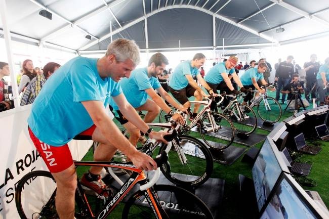 ¿Se puede cargar un Nissan Leaf dando pedales? El fabricante japonés nos demostró ayer que si durante el salón del automóvil de Barcelona mediante un evento bastante ameno que contó, entro otros, con la presencia del ciclista ultra fondista Josef Ajramel.