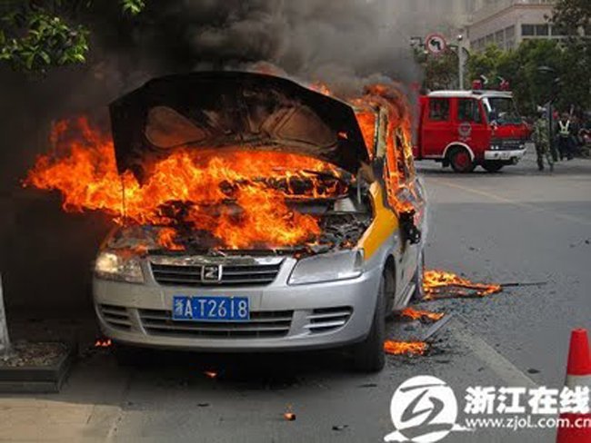 Nadie duda del potencial industrial del gigante asiático, pero lo que tampoco duda casi nadie es de que los controles de calidad distan mucho de los que estamos acostumbrados en occidente. Una buena prueba de ello es el incidente que uno de los taxis eléctricos del fabricante Zotye que desde hace casi un año circulan por la ciudad China de Hangzhou y que hace unas semanas ha sido pasto de las llamas en pleno servicio.