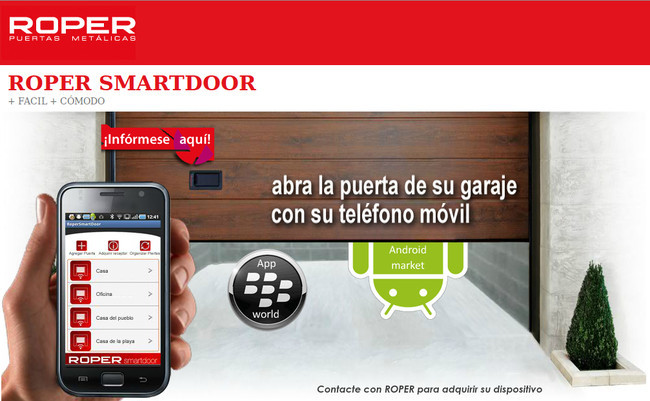 ¿Roper Smartdoor? Sí. ¿Una aplicación más para el móvil? Sí, otra más. Si tenemos aplicaciones de smartphone para gestionar los gastos del coche, para buscar taxi, para hacer ruido, para evitar los baches y hasta para que no tengamos que decir: "Colega, ¿dónde está mi coche?", ¿cómo no íbamos a tener una aplicación para el móvil que nos abre la puerta del garaje?