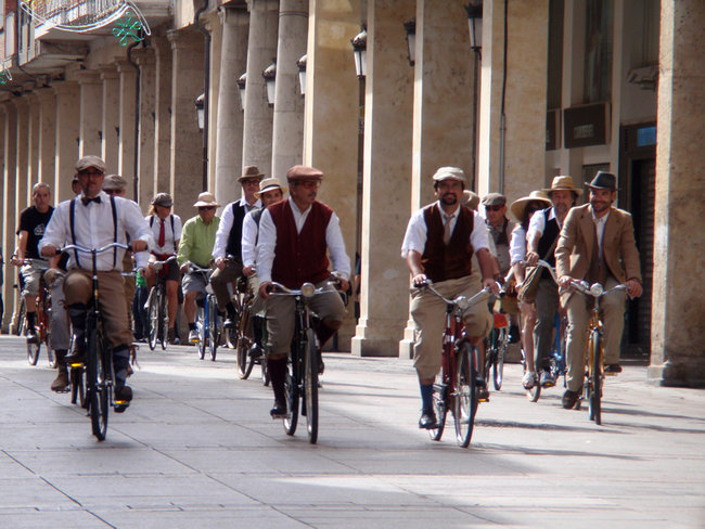Si no tenéis planes para este fin de semana, mañana sábado hay prevista en Palencia una curiosa quedada bicicletera, lo que se suele llamar tweed cycling, tweet ride o tweed run, una concentración de ciclos clásicos en la que los participantes van ataviados con vestimentas de principios del siglo XX. Y si mañana no os va bien, el sábado que viene se darán cita los apasionados de las bicis en Santander.
