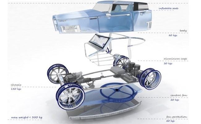 Y es que este francés ha diseñado un automóvil único bautizado como Ventile. Éste utiliza un sistema híbrido combustible/electricidad como sistema de propulsión, pero la novedad está en el uso de un tercer sistema, un ventilador gigante. Éste se encontraría bajo la batería y se activaría con un estudiado sistema de absorción de aire que comienza desde el frontal, y a partir de cierto momento lograría que el vehículo continuara avanzando.