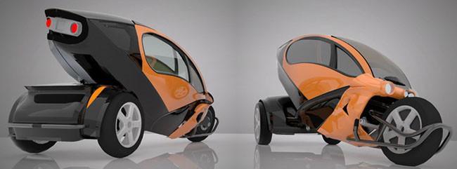 Al ver esta moto de tres ruedas con cabina, que puede inclinarse con respeto a los dos ruedas traseras para los giros y curvas, no podemos evitar recordar a la Carver One, que tenía motor de combustión interna, pero era básicamente el mismo concepto.