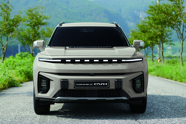 El KGM Torres EVX es un SUV de tamaño medio con 4,72 m de largo, 1,89 m de ancho y una altura de 1,73 m. A pesar de su orientación urbana y familiar, mantiene una estética robusta muy cercana al universo 4x4, en línea con el ADN de la marca. Su diseño apuesta por líneas rectas, una buena altura libre al suelo (20 cm) y voladizos cortos, mientras que el frontal se diferencia del Torres térmico con una parrilla más limpia, faros Full LED específicos, luces DRL y elementos aerodinámicos activos.