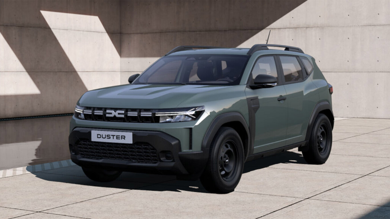 Se trata del Dacia Duster Essential TCe 100 CV ECO-G 4x2. Como sucede con todos los Dacia básicos, tiene un aspecto más sencillo que el del resto de la gama. Queda claro al ver las ruedas, que vienen con llantas de chapa, en lugar de llantas de aleación, o los paragolpes, que vienen con una defensa de plástico negro. La pintura sin sobrecoste se llama Liquen Caqui.