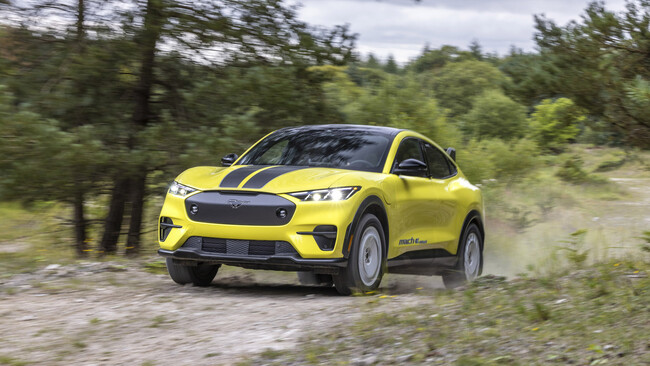 Ford presentó esta versión hace unos meses, en el Salón IAA Mobility de Múnich. Principalmente, se diferencia del Mustang Mach-E GT en el que está basado por las llantas de aleación de 19 pulgadas de estilo rally pintadas en blanco brillante. Como la idea es que este Mustang se pueda utilizar sobre cualquier terreno, van calzadas en neumáticos Michelin CrossClimate2 en medida 235/55 R19.