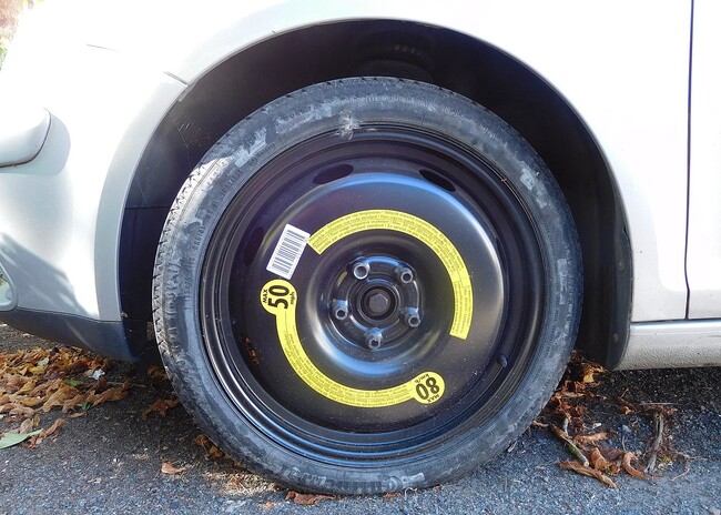 - Rueda de repuesto de "galleta": Se trata de una rueda de emergencia, con la que solo se puede circular con un límite de velocidad, a partir de dicha velocidad, es poco segura y podría reventar. Su finalidad es poder circular hasta un taller cercano para reparar o cambiar la rueda averiada.