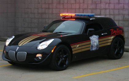 Dudo mucho que este EDAG Pontiac Solstice Cop Car sea el vehículo más cómodo para la policía, pero si poniéndole un par de pegatinas en los laterales y unas sirenas en el techo vale para vender su hardtop, bienvenido sea en Detroit.