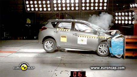 Todo esto se traduce en escenas muy completas como las que tenéis a continuación en la que podéis analizar el comportamiento del vehículo (se trata del Toyota Auris 2013, con la máxima puntuación) ante las pruebas principales. Además podéis leer el análisis detallado en la web del Euro NCAP.
