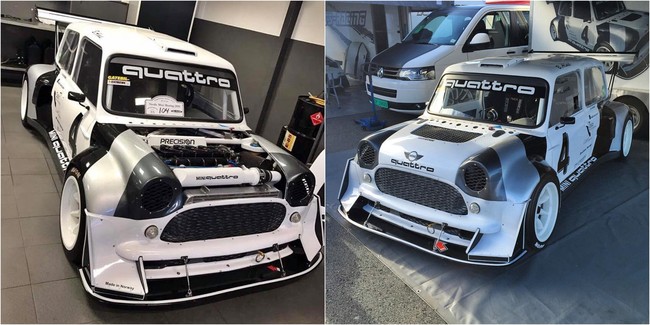 Este pequeño Hot Wheels construido por Brede Alnes ha aprovechando un sistema Quattro de tracción integral modificado a medida para soportar los empujones de un motor de cinco cilindros en línea turbo de origen Audi asociado a una transmisión manual de seis velocidades que se esconde en su interior.