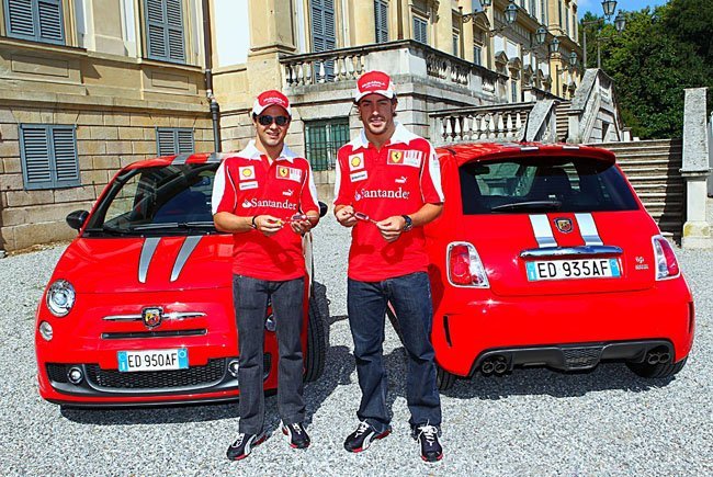 Fernando Alonso y Felipe Massa están ahora mismo luchando por conseguir la “pole position” en el Circuito de Monza con sus Ferrari de Fórmula 1, pero cuando salgan del circuito se pondrán al volante de sus nuevos “juguetes”, ya que esta semana han recibido sendos Abarth 695 Tributo Ferrari, que cuestan el doble que un Aston Martin.