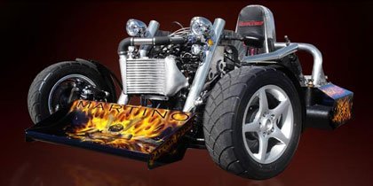 Construido por Martino Motor Company, el Kamikaze es el primer vehículo dentro de la clase Integrated Performance Vehicles, clase inventada por MMC y por la cual ya han pedido una patente. Equipado con el motor de la Suzuki GSX 1300 R Hayabusa, como ya lo hacen el Suzuki GSX-R/4 Concept y el Zolfe Orange, pero con una “pequeña” diferencia, puesto que de los 175 CV que da el motor de serie, gracias a un turbo y un intercooler alcanza los 400 CV. Si a esa potencia la unimos a un peso bastante ligero, 453 kg, es normal que salga ganando en la relación peso/potencia contra otros pesos pesados de la velocidad como el Saleen S7 o el Ford GT, por nombrar algunos de los que salen en la tabla comparativa. Y todo esto por un precio de 66.800 euros, mucho más barato que un supercar. Aunque eso sí, en estética le hacen falta muchísimas mejoras respecto a sus rivales.