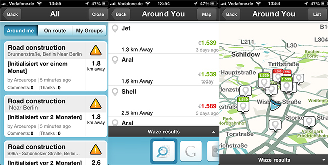 Waze social GPS traffic & gas, o Waze, para abreviar, es quizás una de las mejores aplicaciones que haya probado hasta ahora en cuanto a conducción se refiere. Os puedo contar que, siendo un recién llegado a una ciudad como Berlín, me he encontrado con grandes diferencias de precios en el combustible, según el día o el lugar. Además, como toda capital que se precie, las obras, sobre todo en esta época del año, inundan la ciudad y calles que solían tener dos o tres carriles se ven reducidas a uno.