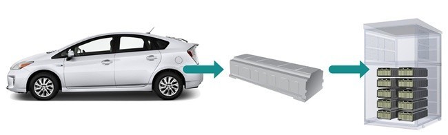 Las baterías recicladas se usan para suministrar energía de coche a coche, como unidades de almacenamiento y como sistemas de respaldo en caso de emergencia