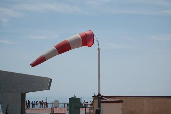 El primer consejo es aminorar un poco la marcha, siempre en función de la fuerza del viento. Si circulamos por un puente o un viaducto, es probable que veamos una manga de viento (anemoscopio) que nos indicará la dirección instantánea del viento y su fuerza. Cuanto más despacio circulemos, menor será el desplazamiento lateral que acusaremos ante una fuerte racha lateral.