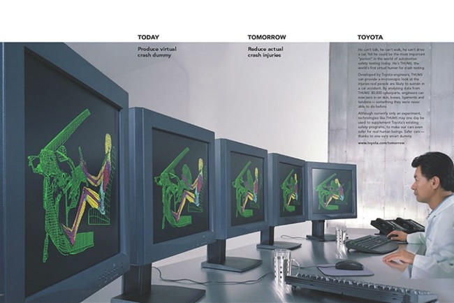 Con el fin de recrear estas condiciones, Toyota ha conseguido incorporar un nuevo modelo muscular que puede simular los estados posturales humanos en la más reciente versión de su software de modelación humana virtual ‘Total Human Model for Safety’ (THUMS). Puede así simular diversos estados desde el relajamiento más absoluto hasta tenso tras agarrase, consiguiendo un análisis informático más detallado de las lesiones provocadas por las colisiones.