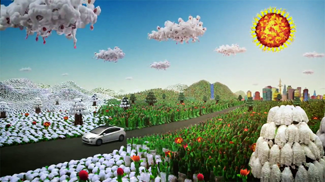 John Toon, director de fotografía, confiesa no haber visto jamás un storyboard que le impresionara tanto. Vuelve a verlo si es necesario. Sí, el mundo que despierta al paso del Toyota Prius del anuncio está hecho a base de la perfecta sincronización de 200 extras que se transforman en cerca de un millón gracias a los efectos informáticos. Todos ellos, además, han construido todos los elementos que vemos en escena. 150 personas formaron el césped y el agua, 22 los troncos, 20 las piedras, 30 las hojas, 20 las nubes o diez el Sol.