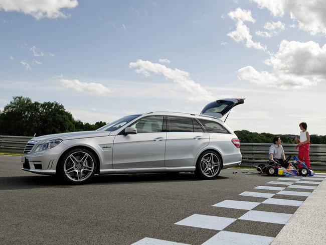 El primer modelo familiar alocado de la Clase E, al menos de forma oficial, fue el E 55 AMG tipo W210 (V8 atmosférico de 5.4 litros y 354 CV). Con las siguientes generaciones de Clase E, Mercedes y AMG repitieron la receta: unir el familiar (cómodo, espacioso) del Clase E con un enorme motor. El W211 equipado con el V8 5.4 litros, esta vez sobrealimentado por compresor (476 CV y 700 Nm), fue el sucesor directo del E 55 AMG.