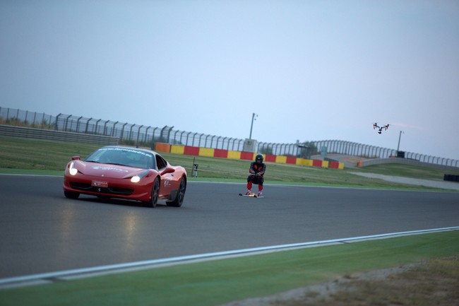 El Circuito de Motorland Aragón ha sido hace unos días el escenario de un singular récord de velocidad. El esquiador madrileño de origen británico Jan Farrell se convirtió en el esquiador sobre asfalto más rápido del mundo, y lo hizo enganchado a un Ferrari 458 Italia Competizione.