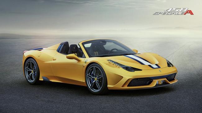 Del Ferrari 458 Speciale A hay que destacar que únicamente se venderá en color amarillo, y que las pocas opciones de personalización se ciñen a una franja central en azul Blu Nart y Blanco (Bianco) Avus. También destacan las llantas de aleación de cinco radios en color Grigio Corsa que le ayudan a conseguir un aspecto de lo más deportivo.