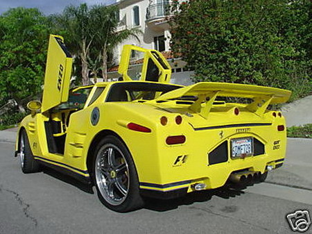 Su parte trasera, cuatro tubos de escape pegados y unas necesarias pegatinas de GT Enzo y F1. Sólo me queda el consuelo de pensar que se encuentra a miles de kilómetros de aquí.