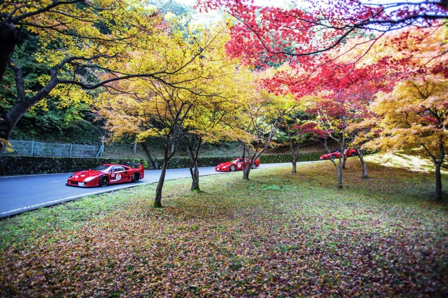 Shiga, el lago Biwa, el santuario Shirahige Shrine y las secuoyas de Takashima que regalaron unas estampas impresionantes, como la de la imagen que abre este artículo. La ciudad de Nara también recibió a los Ferrari y todo concluyó con una cena de gala en el templo Tofuku-ji.